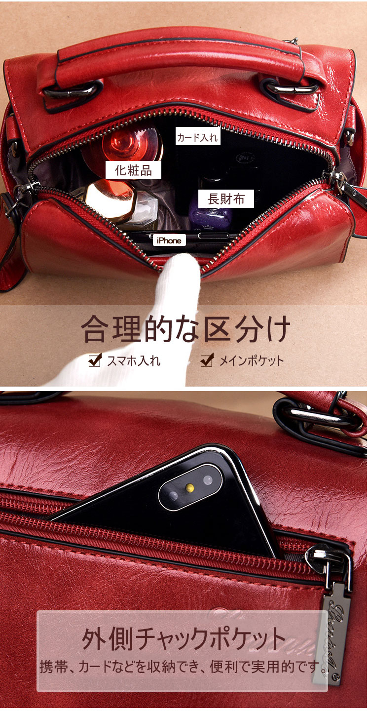 [オフィシャル] 牛革ショルダーバッグ、おしゃれなコンパクトスタイル、キレイでシンプルな色合い、色つやがいい、手触りがいい、クラシック、手入れしやすい【着払い】